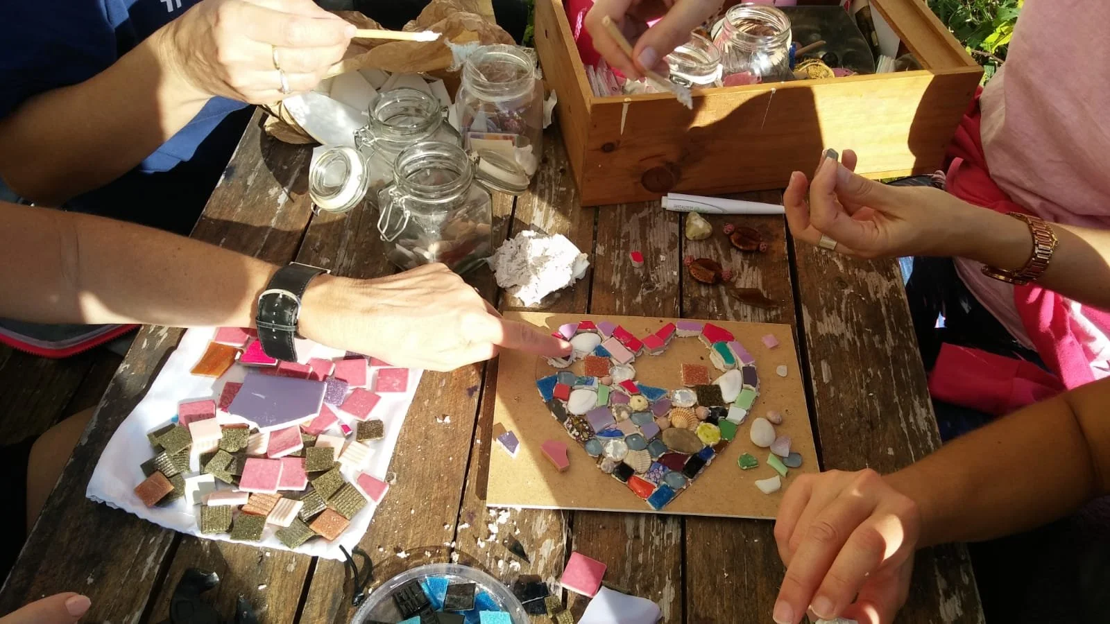 Atelier de médiation mosaïque organisé dans un contexte de lien social.
